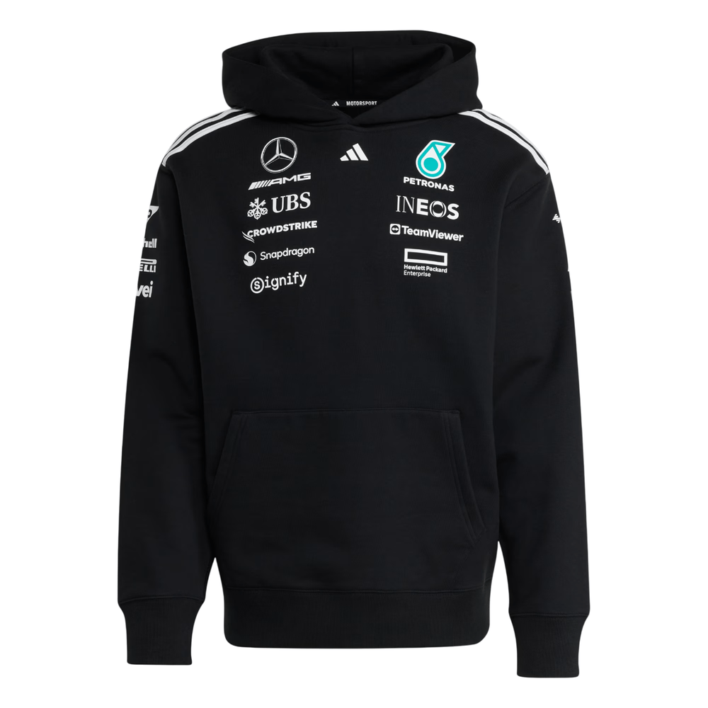 Mostre seu estilo autêntico com o Moletom com Capuz adidas Mercedes-Benz F1, inspirado nos modelos usados pelos pilotos da Mercedes-AMG Petronas Formula One Team. Confeccionado em moletinho de algodão macio, oferece conforto superior e um caimento levemente folgado, ideal para o dia a dia ou para torcer pela equipe. Os logos oficiais da equipe e patrocinadores no peito completam o visual autêntico e esportivo, que une performance, estilo e paixão pela Fórmula 1.